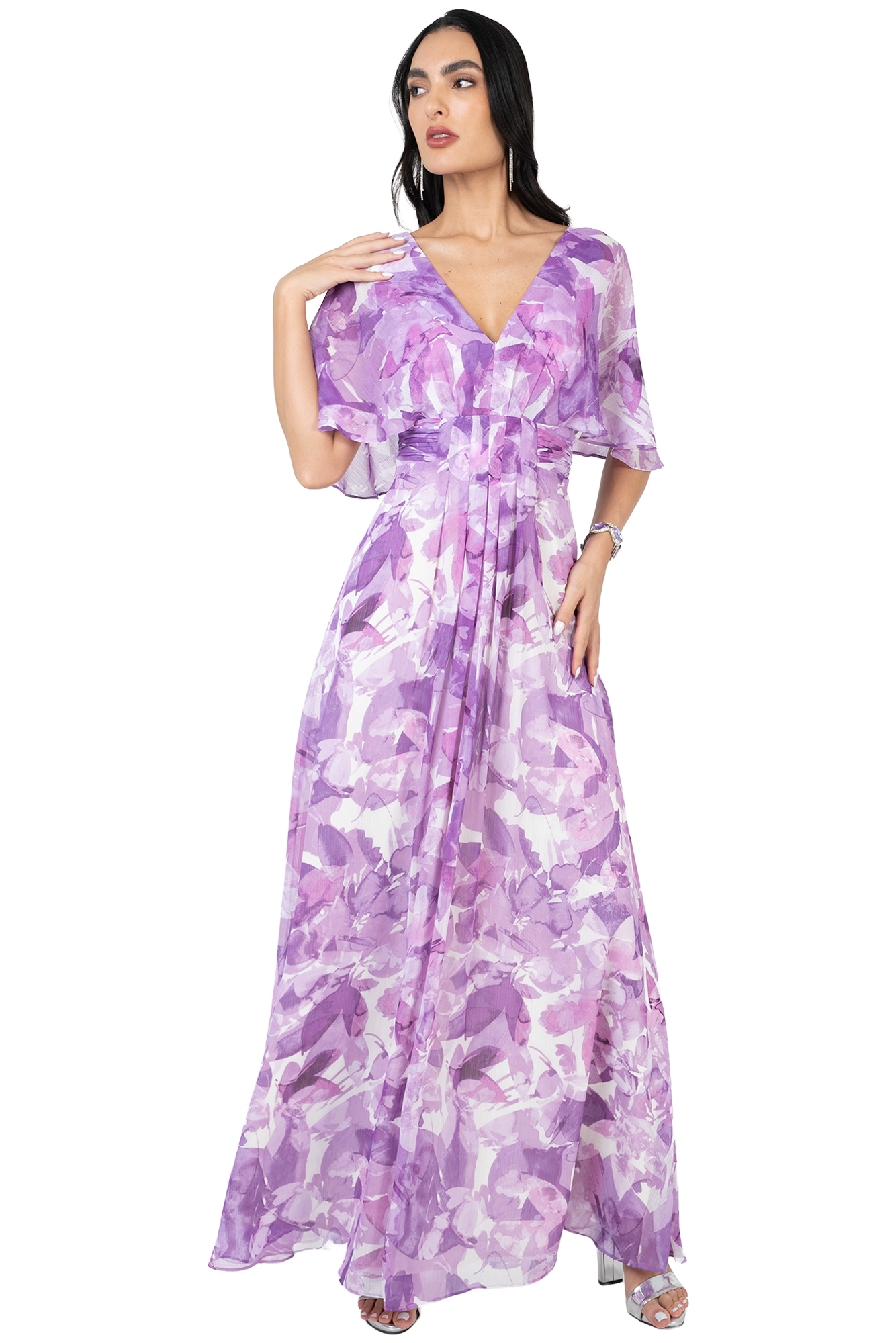 Silueta que Favorece y Ajusta: El escote en “V” y las mangas Dolman (tipo murciélago) ofrecen una cobertura sofisticada y fresca, ideal para quienes prefieren un estilo discreto en los brazos. La fajilla drapeada define la cintura, mientras que las jaretas en la espalda permiten un ajuste personalizado a tu silueta. La falda con pliegues al frente añade el volumen justo para una presencia de gala con un aire orgánico y relajado.
