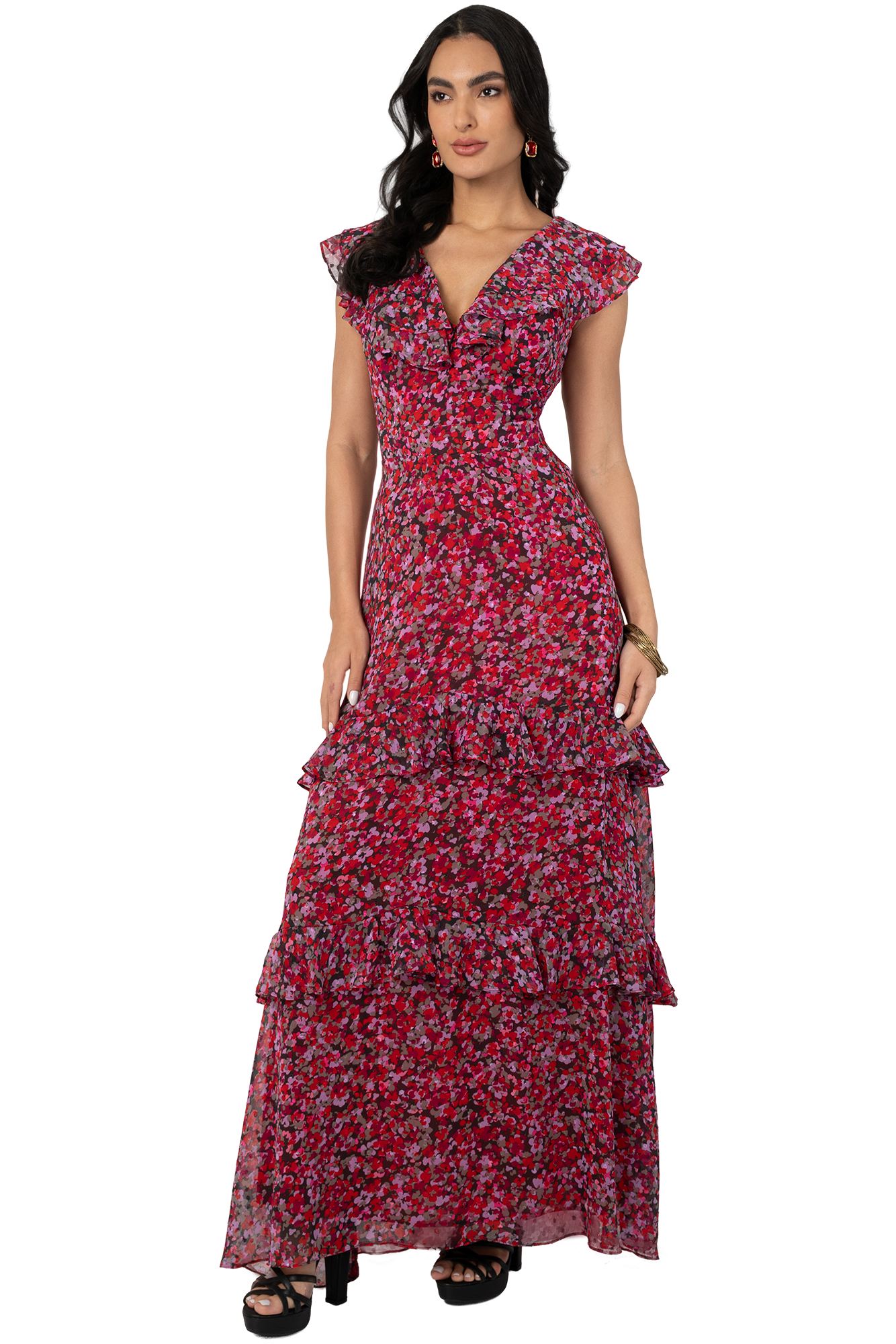 Vestido de Fiesta Largo Rojo en Yoryu Estampado